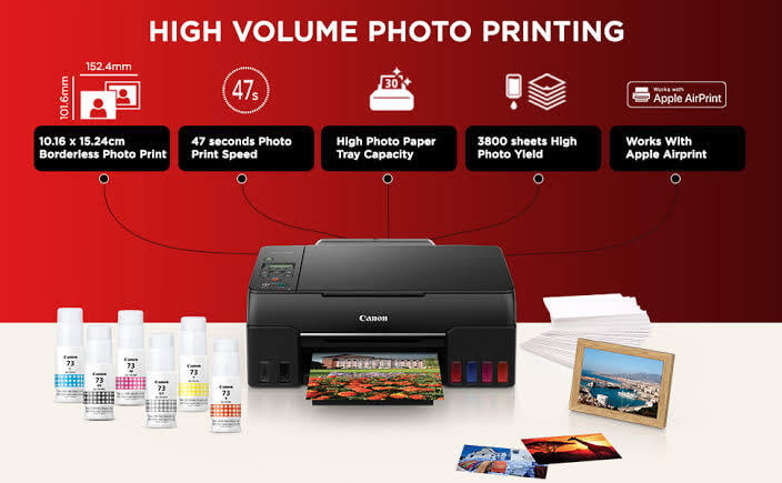 Designed for high volume photo printing, this 6-colour wireless 3-in-1 photo printer delivers photo lab quality photo prints at ultra low cost printing with easy wireless setup and convenient maintenance.